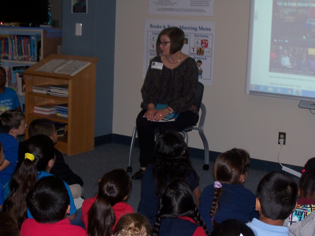 Speaking to third and fourth graders at Liestman Elementary about H is for Houston and the writing process.